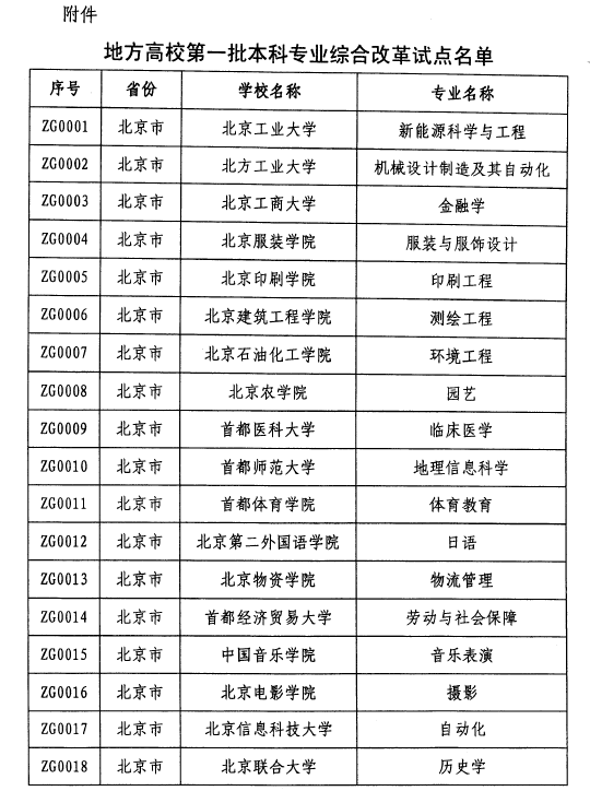 专业综合改革试点