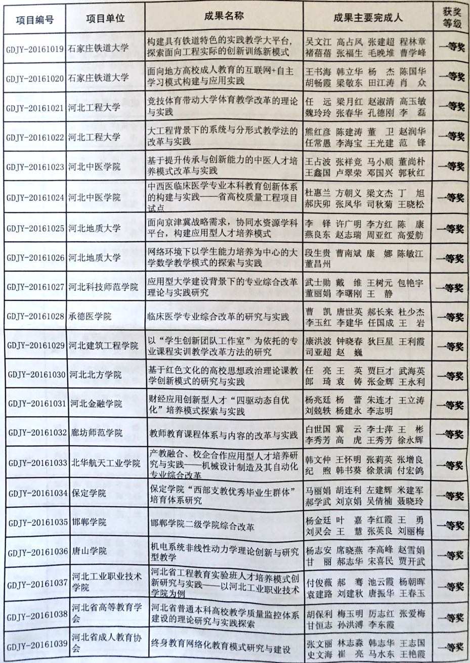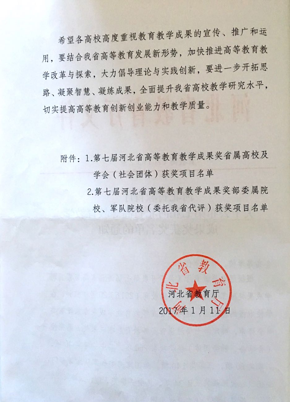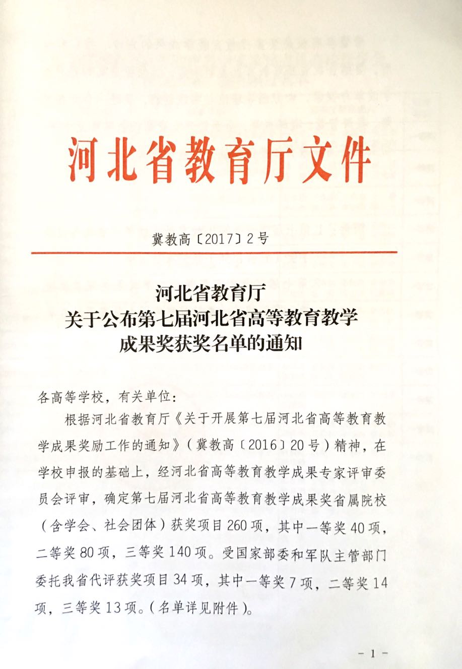 河北省教学成果奖一等奖