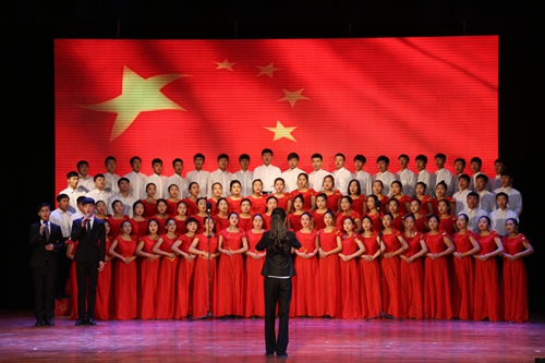 校合唱团演唱《红飘带》《红旗飘飘》