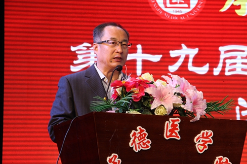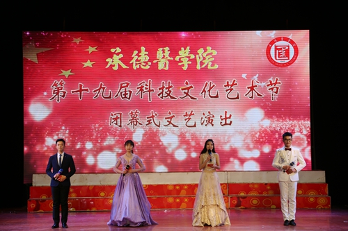 “青春榜样,使命同行;风华神韵,比肩共赢。”我校第十九届科技文化艺术节闭幕式于2016年12月3日下午在承德市青少年宫举行。 副校长唐世英致闭幕辞。他指出,今年是十三五开局之年,也是中国共产党成立95周年,中国工农红军长征胜利80周年,在全国上下深入学习贯彻党的十八届六中全会精神之际,全校师生紧紧抓住了机遇,以“踏石留印,抓铁有痕”的韧性,在科技文化艺术节期间,解放思想,先行先试,全面推进了我校素质教育改革,把我校校园文化建设再次推向一个新的高度。他鼓励全校师生,继续团结拼搏,锐意进取,在以习近平同志为核心的党中央坚强领导下,高举中国特色社会主义伟大旗帜,传承和发扬承医精神,为实现我校的发展目标做出更大的贡献。 整场文艺演出各具特色、异彩纷呈。或动感十足或轻盈优美的舞姿,气势恢宏的朗诵,都为观众带来视听震撼。校园十佳歌手代表为大家呈现的歌曲演唱高潮迭起。离退休的老干部们带来的大合唱《四渡赤水》、《长征》赢得了观众的热烈掌声,充分展现了我校广大教师爱国爱党情怀和对党的真挚祝福。浑厚醇美的音色和耳熟能详的旋律勾起了大家对于往昔峥嵘岁月的美好回忆。闭幕式上,科技文化艺术节期间各大比赛优秀文艺节目的展演,让在场的观众们领略到了承医文化生活的丰富多彩,体现了师生奋发向上的精神力量。同时,闭幕式还进行了颁奖环节,表彰了科技文化艺术节期间各个大赛一等奖获得者、学校2015—2016学年“大学生创新创业优秀指导教师”、科技文化艺术节先进个人代表、2016年承德医学院创客先锋优秀团队及基础医学院和护理学院科技文化艺术节优秀组织单位。 今年,科技文化艺术节闭幕式在原有基础上也有了新的创新,精心制作了科技文化艺术节宣传视频,一起回首承医路,追溯科文岁月,全校师生凝聚智慧力量全面推进素质教育,从缤纷的校园生活中挖掘、提炼艺术素材和文化内涵,积极践行和培育社会主义核心价值观,只为让科技、文化在承医的校园中蓬勃绽放,彰显了我校师生积极进取,谱写承医新篇章的精神风貌。创新、创业宣传视频《梦前行》,回顾了我校创新创业的精彩历程与取得的成效。本次闭幕式的另一大创新之处是运用承德医学院团委微信公众平台、校学生会、社团联合会、大学生科创联盟官方QQ等新媒体对闭幕式现场进行全程直播,观看人次达3525人,点赞量达两万有余,充分展示我校学子青春风采。第十九届科技文化艺术节在校合唱团的《红飘带》《红旗飘飘》中圆满结束。 本届科技文化艺术节历时近三个月,期间举办了开幕式文艺演出、校园歌手大赛、校园舞蹈大赛、英文原声电影配音大赛、纪念长征胜利80周年朗诵大赛、大学生科研讲座、“挑战杯”大学生课外学术科技作品竞赛及闭幕式文艺演出等15项活动,参与各类文化活动近万余人次。本届科技文化艺术节同立德树人,同“两学一做”学习教育有机结合,以喜闻乐见的活动形式,利用新媒体为宣传载体,多层次、全方位展示了我校素质教育实施成果。学校将继续在以习近平同志为核心的党中央坚强领导下,紧跟时代步伐,积极引导广大学生成长、成才,担负起时代赋予的光荣使命,秉承“艰苦奋斗、锲而不舍、求真务实、拼搏进取”的承医精神,在把我校建设成为医科大学的宏伟事业中,谱写出更加辉煌灿烂的乐章! 副校长、第十九届科技文化艺术节组委会主任唐世英,纪委副书记、基础医学院党总支书记杨凤国,党委办公室主任于淑华,学校办公室主任安文忠,教务处处长李玉红,关心下一代工作委员会秘书长、离退休人员管理处处长王艳丽,学生处处长、团委书记沈浩,护理学院党总支书记杨宏坤,生物医学工程系直属党支部书记许士奇,基础医学院党总支副书记李欣,党委宣传部副部长周文娟,团委副书记白江涛以及各院、系团务负责老师和全校师生代表近五百人参加了此次活动。