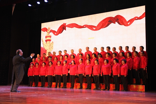 离退休老干部们表演大合唱《四渡赤水》《长征》