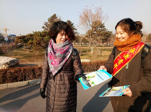 志愿者向市民发放宣传单