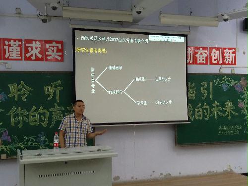 为更好地指导我校基础医学院学生考研、就业,5月13日晚,基础医学院于教学楼202开展以“聆听你的声音 指引我的未来”为主题的西医综合考研规划指导交流会。 研大独家讲师,北京大学医学部博士,西医考研黑皮书系列图书作者王强,应邀担任本次交流会活动主讲人。活动现场,王强老师从历年考研改革和西综考研发展切入主题,为现场三百余人带来了一场内容丰富生动的考研讲座。讲座中,王强解析历年西综真题,结合现场观众学习进度,解读了西综政策大纲。随后,王强分析了同学们在考研过程中的心理变化并运用“四条主线,一个规划”的学习技巧为同学们制定了高效的复习计划。最后,王强同现场观众互动问答,解决了“实习与考研的时间分配”“考研中适合报考哪些院校”等同学们密切关心的问题,引来了观众们的阵阵掌声。 此次交流会活动不仅使同学们有针对性地了解到考研现况,也对同学们制定高效的复习计划有一定的指导规划意义。