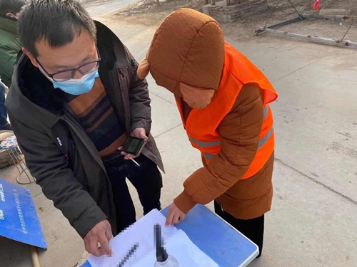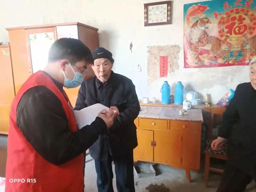 志愿者孙思佳进行体温测量与出入人员信息登记 同为青年党员的方霄宇在河北省邯郸市成安县柏寺营乡大金山村参加了为期一周的疫情防控志愿服务活动,每日早出晚归,在村内出入口要道进行体温测量和出入人员信息登记,并呼吁村民认真落实好疫情防控举措。关于疫情防控工作,她说:“只要我们每个人都做出力所能及的贡献,每个人都是平凡的英雄,都可以为防疫做点什么,众志成城之下,没有一个冬天不可逾越,没有一个春天不会到来。” 共克时艰,时代青年显担当 临床医学12班的孔焱磊在结束学业返乡后便闻及新冠肺炎疫情侵扰了他的家乡--河北邢台。作为医学生,孔焱磊积极主动地参加了村支部组织的志愿服务活动,成为了第一批志愿者。1月5日,在瑟瑟寒风中,孔焱磊和工作小组挨家挨户地进行人口普查登记,询问外来人口的具体情况并进行记录。
