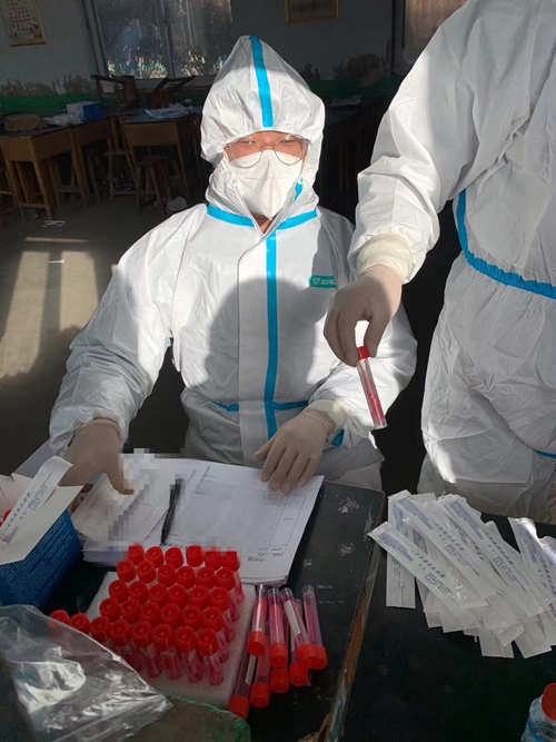 志愿者孔炎磊进行人口普查和外来人员登记 随着邢台市疫情的迅速发展,全市进行了封闭管理和全民核酸检测。刚刚完成人口普查任务的孔焱磊又积极参与到第二次全民核酸检测工作中。从早晨7点开始准备工作,10人一组,帮助医务人员登记,工作一直持续到晚上7点才结束。第二轮核酸检测工作中,他所在的两人小组一天检测居民1190人。随后,孔焱磊又参加了第三轮核酸检测工作,从早晨7点一直工作到晚上8点,他与另外一名工作人员一天检测居民1390人。问起孔焱磊最深的感触,他说:“这些天下来真正体会到了防疫工作者的辛苦。在此,我向每一个在前线的医务人员和英雄们致敬,为我们的国家和党的英明决策点赞,希望我这微不足道的贡献可以帮助我的家乡早日战胜疫情!”