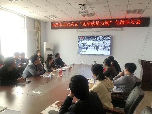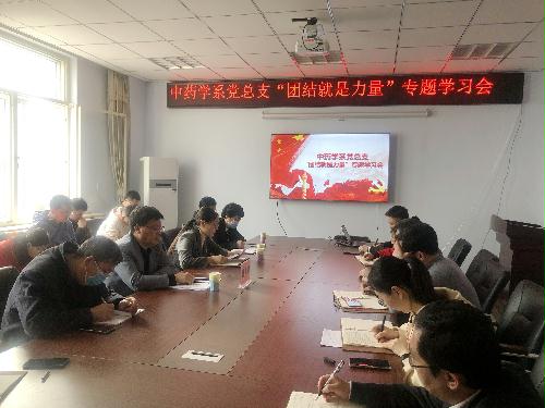 中药学系党总支召开“团结就是力量”专题学习会 周文娟要求,各党支部要以此次专题学习会为起点,召开支部党员大会、党小组会传达学习,做到原原本本学、逐字逐句学、创新方法学、深入细致学,迅速将总书记的亲切关怀、肯定勉励和殿切期望,传达到每一名党员。