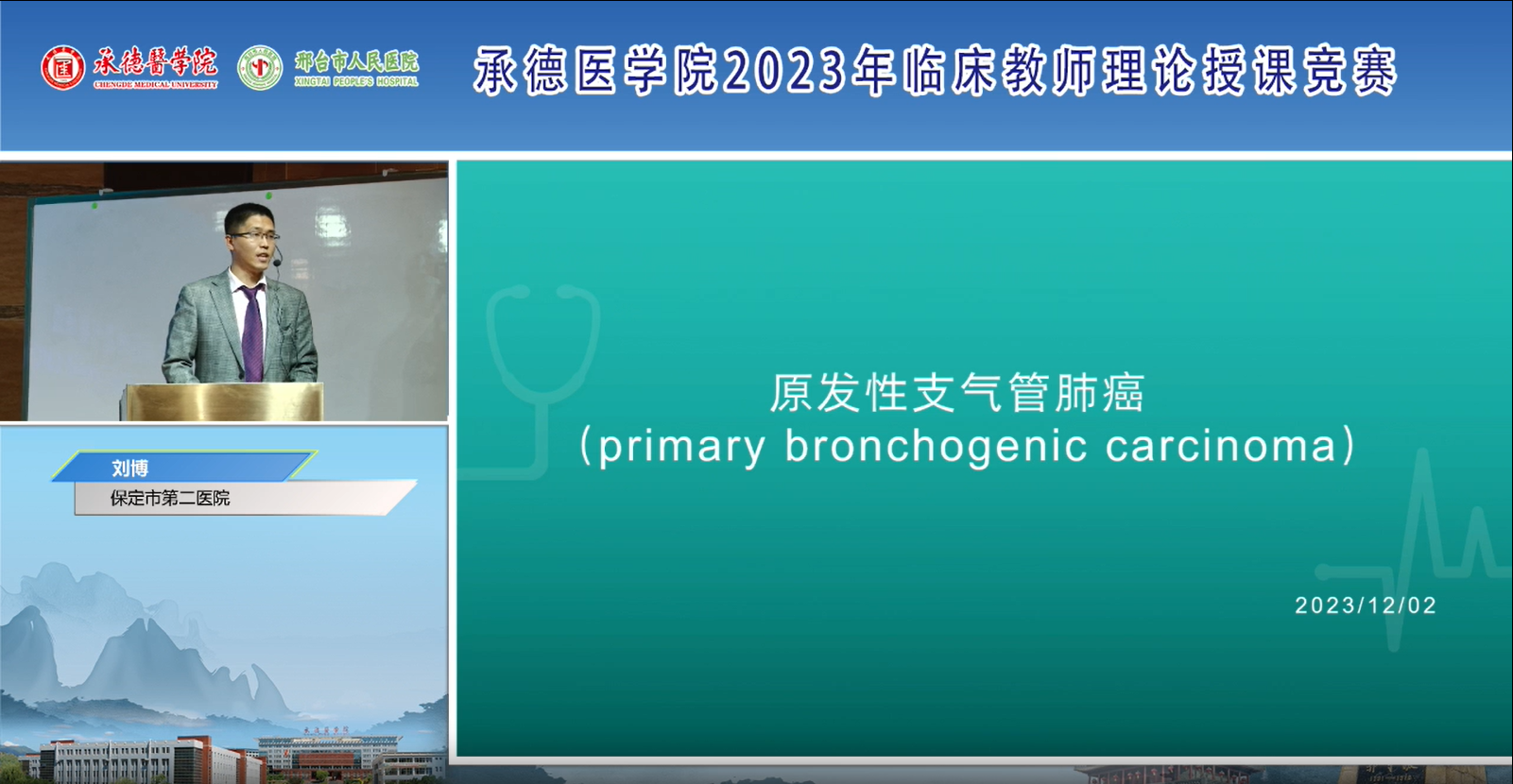 为进一步加强我校临床师资队伍建设,提高临床教师教学水平和技能,展现各教学基地的教学风采,培养教学热情,促进临床教学质量整体提升,2023年12月2日至3日,我校举办了2023年临床教师理论授课竞赛,本次大赛由邢台市人民医院承办。 (点击每张图片即可查看原图)
