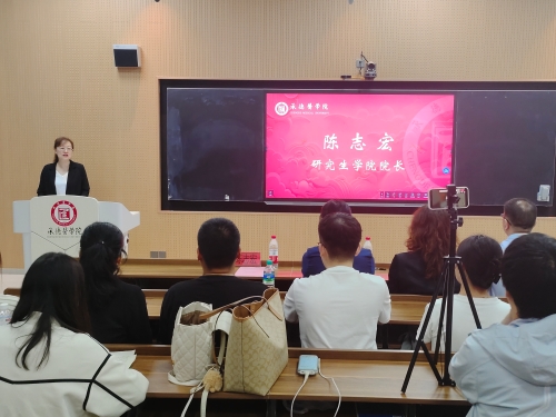 研究生学院院长陈志宏发言 李玉红在讲话中强调,大学之“大”,在于“赓续红色基因,传承承医精神”的使命重大,在于“奋力传承创新,增长知识才干”的学问广大,在于“胸怀祖国、服务人民”的精神博大。她希望同学们,站在新起点,面向新征程,深刻认识到国家、人民赋予的使命,勇敢肩负时代给予的重任,不负学校寄予的厚望,在真学实干中夯实本领,在锐意创新中拥抱未来,学以成材,学以报国,以青春之名续写“承医故事”“中医故事”,成就人生华章。