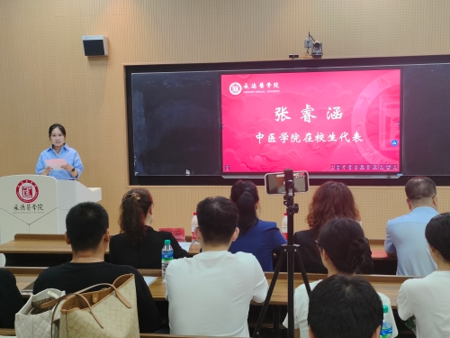 刘慧代表研究生导师发言 2023级张睿涵作为在校生代表发言,以先行者的身份分享个人心得与感悟,建议各位新生要做好合理规划,学好专业知识,助力全面发展。2024级李雨丰同学作为新生代表向各位老师们致以崇高的敬意,并表达了他们对中医药事业的热爱及对未来学习生活的美好憧憬。