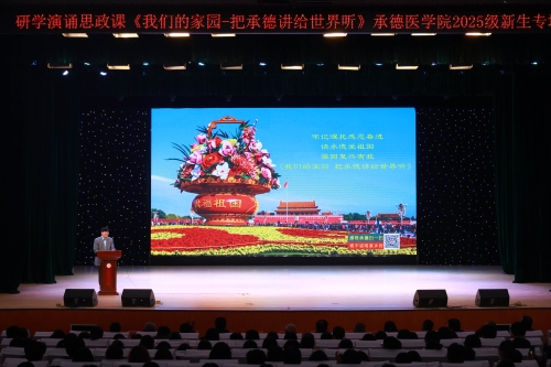 | 为践行习近平总书记视察承德重要讲话和重要指示精神,深化师生思想政治引领,引导青年学生深度探寻承德历史文脉、感知时代发展脉搏、厚植爱国爱乡情怀,10月17日,由承德市关心下一代工作委员会主办的“晚7点青年思政夜校”——牢记嘱托,感恩奋进,读承德爱祖国,强国复兴有我,《我们的家园·把承德讲给世界听》研学演诵思政课堂,正式走进我校。 活动创新采用“会堂主课堂现场演出+全校50个主题班会教室分课堂同步直播”模式,为广大师生打造了一堂兼具思想深度、文化厚度与艺术感染力的“大思政课”。 活动伊始,学校党委副书记张学良致辞。他首先对市关工委及文化志愿者表示热烈欢迎与衷心感谢,随后介绍了我校红色基因传承脉络与大思政育人体系的建设成效,强调此次研学演诵思政课对丰富育人体系、引导师生厚植家国情怀具有重要意义。