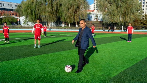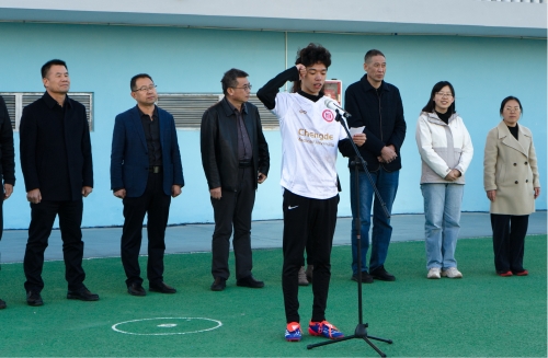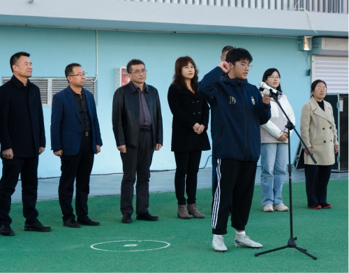 开幕式上,郭玉成发表致辞。他强调,校园足球场不仅是体育竞技的赛场,更是学校深化 “五育并举” 教育方针的重要实践课堂。学校始终将体育教育纳入人才培养核心环节,通过多样化、特色化的体育活动,为学生全面发展提供有力支撑。他向全体运动员寄语,希望大家弘扬 “友谊第一、比赛第二” 的体育精神,在赛场上赛出风格、赛出水平;同时期望裁判员严格遵守规则、公正执裁,工作人员细致做好服务保障,共同守护好本次校园体育盛会。