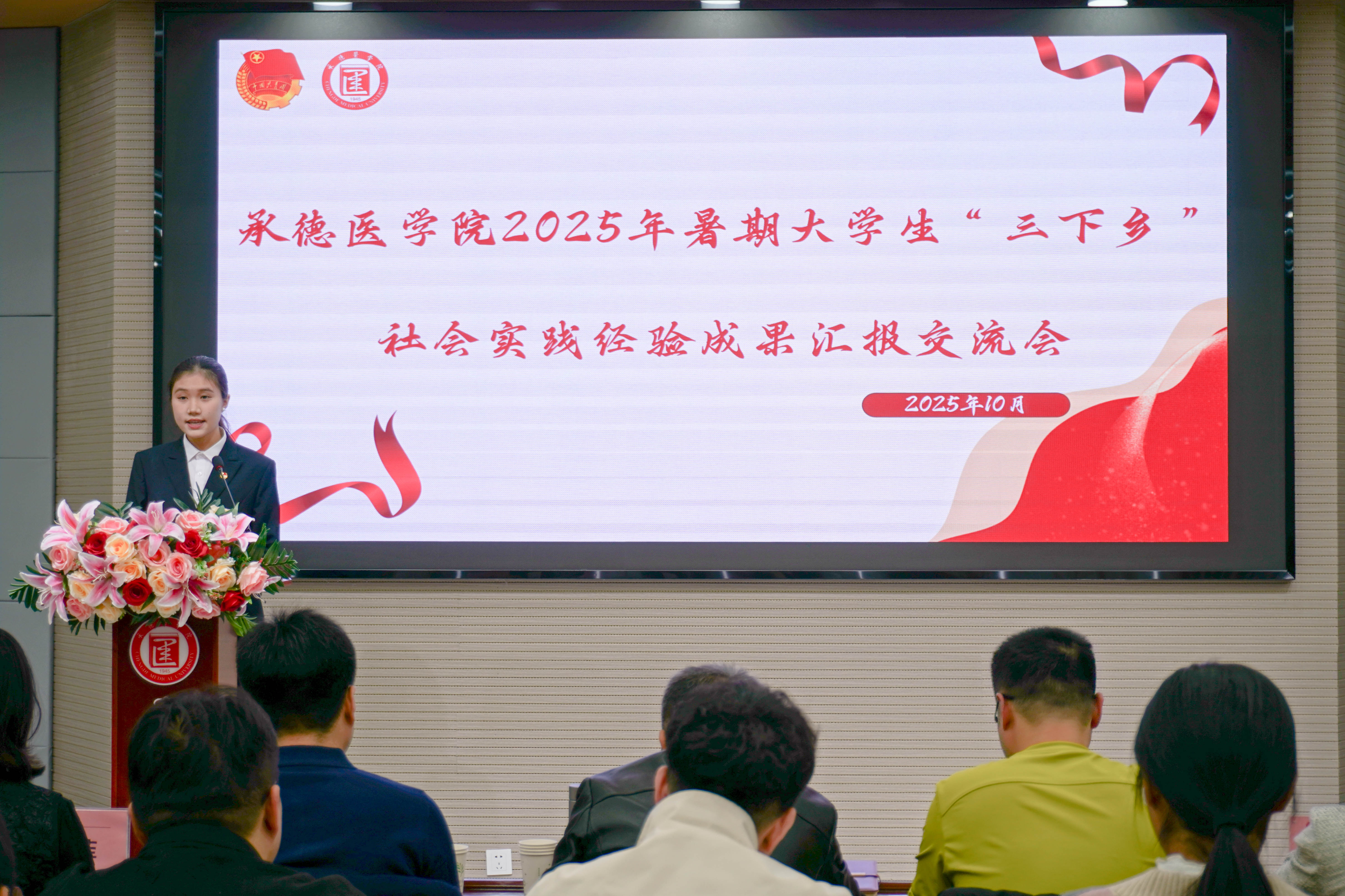 社会实践成果展示 会上,主持人简要回顾了我校2025年暑期“三下乡”社会实践活动的整体开展情况。随后,各院(系)社会实践重点队伍代表依次登台,围绕基层医疗服务、红色精神传承、乡村振兴赋能等核心领域,分享了实践过程中的鲜活案例、丰硕成果与深刻感悟。从田间地头的健康义诊到红色基地的精神洗礼,从乡村发展的实地调研到民生需求的精准回应,学子们用行动诠释奉献,用青春书写担当,充分展现了承医学子甘于奉献、勇毅有为的青春风貌。经现场评审,“红医向党,医起振兴”社会实践服务团等12支队伍,荣获“2025年社会实践卓越示范队”称号。