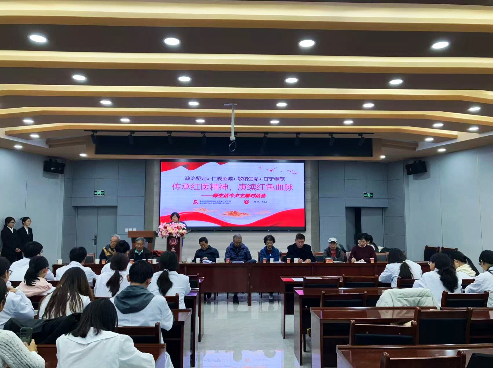 | 2025年10月24日至29日,为弘扬尊老爱老传统美德,传承红色基因与承医精神,离退休党委多个党支部于重阳节前夕和节日当天, 联合学生班级、团支部及社团开展主题鲜明的重阳节师生互动活动,以“交流 + 传承 + 联谊”的多元形式,搭建老少对话平台,凝聚师生情谊,筑牢立德树人根基。 红医精神传薪火 专业引领启新程 24 日下午,离退休第二党支部与中医系 2024级中医学第一团支部在“一站式”学生社区服务中心214 室联合开展“传承红医精神 庚续红色血脉 —— 师生话今夕”主题活动。