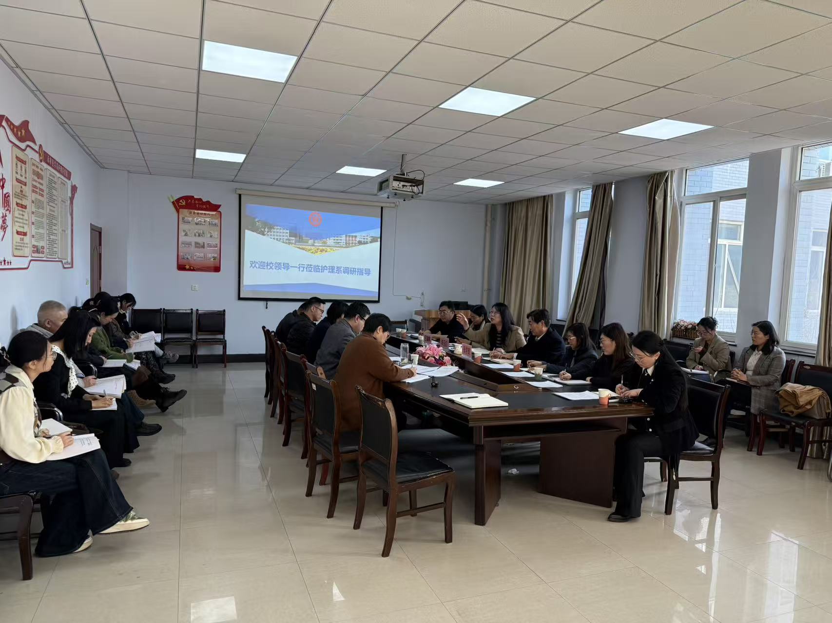 为全面落实国家护理学专业认证标准,系统推进护理学专业内涵式发展,12月11日,学校党委副书记、校长李玉红,党委副书记张学良,党委常委、副校长王瑞婷及相关职能部门负责人一行,赴护理系开展护理学专业认证专题调研。护理系全体教职工参加调研会议。 会上,护理系主任田建丽围绕护理学专业认证准备工作作专题汇报。她对认证的定量指标及《护理学本科专业认证标准》的7项一级、34项二级、91项三级指标进行了系统解读,明确了后续工作的衡量标准与努力方向。随后,她通过国内省内排名、招生就业对比及师资情况等横向比较,全面分析了护理系专业现状。对标认证要求,她深入剖析了当前存在的差距与短板,提出了下一阶段重点任务与具体举措,并说明了护理系在资源、政策、硬件及跨部门协作等方面需学校给予的支持。此外,她还汇报了推行高年级理论教学的可行性分析与准备情况,并就未来可能申报新专业提出了初步设想与规划。