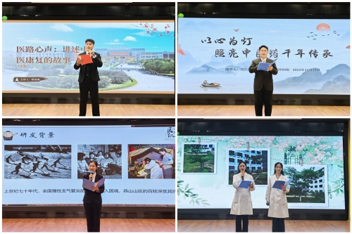 演讲比赛现场 本次宣传月自10月29日启动,围绕中医药文化传播与科学普及,策划开展了七大板块活动,累计参与逾2000人次,直接服务公众超500人次。活动涵盖“中医药文化三进一敬”公益服务、“本草寻踪,健步同行”主题健步走、“思辨医道”辩论赛、“医言药语,话健康”科普视频大赛、“创意赋活中医药”文创设计大赛、“名医讲堂”专家讲座及“医路心声”演讲比赛等,形成了“以教促学、以研促用、学用相长”的育人氛围,有效推动中医药文化在教育教学深化与科研实践拓展中落地生根。 闭幕式通过视频回顾了宣传月期间的精彩瞬间。 王瑞婷副校长在致辞中充分肯定活动在普及中医药知识、提升师生专业能力与社会服务能力实效方面的作用。她指出,本次活动是中医药科普与学校教育、科研创新、社会服务深度融合的体现,并强调学校将继续支持中医药文化传播,鼓励师生为健康中国建设贡献力量。 随后进行的“医路心声·讲好中医药故事”演讲比赛将现场气氛推向高潮。十组选手结合专业知识、科研心得与个人经历,以生动案例和创新表达,展现了中医药的守正创新与时代活力。期间穿插的舞台剧《岐黄论道》,以艺术形式诠释中医药发展历程,引人入胜。 闭幕式上还对宣传月期间各项比赛的获奖者、先进个人、优秀指导教师与志愿者进行了表彰。