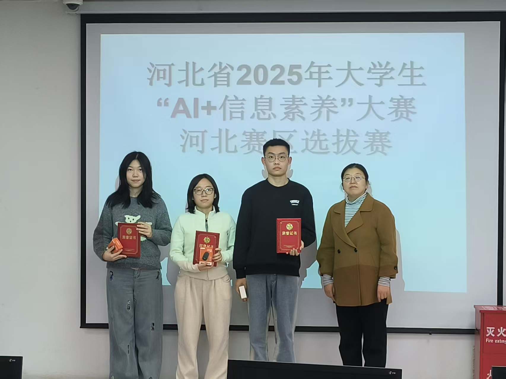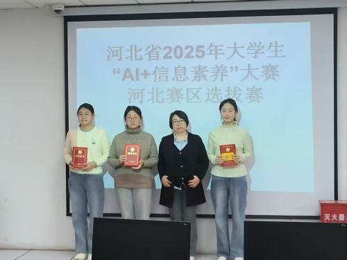 12月18日下午,在图书馆五楼举行了2025年大学生“AI+信息素养”大赛河北赛区和校赛颁奖仪式。图书馆副馆长高雅佳为获奖同学颁奖并致以祝贺。她希望获奖同学珍惜荣誉、再接再厉,充分发挥示范引领作用,带动更多同学提升智能时代的核心竞争力。