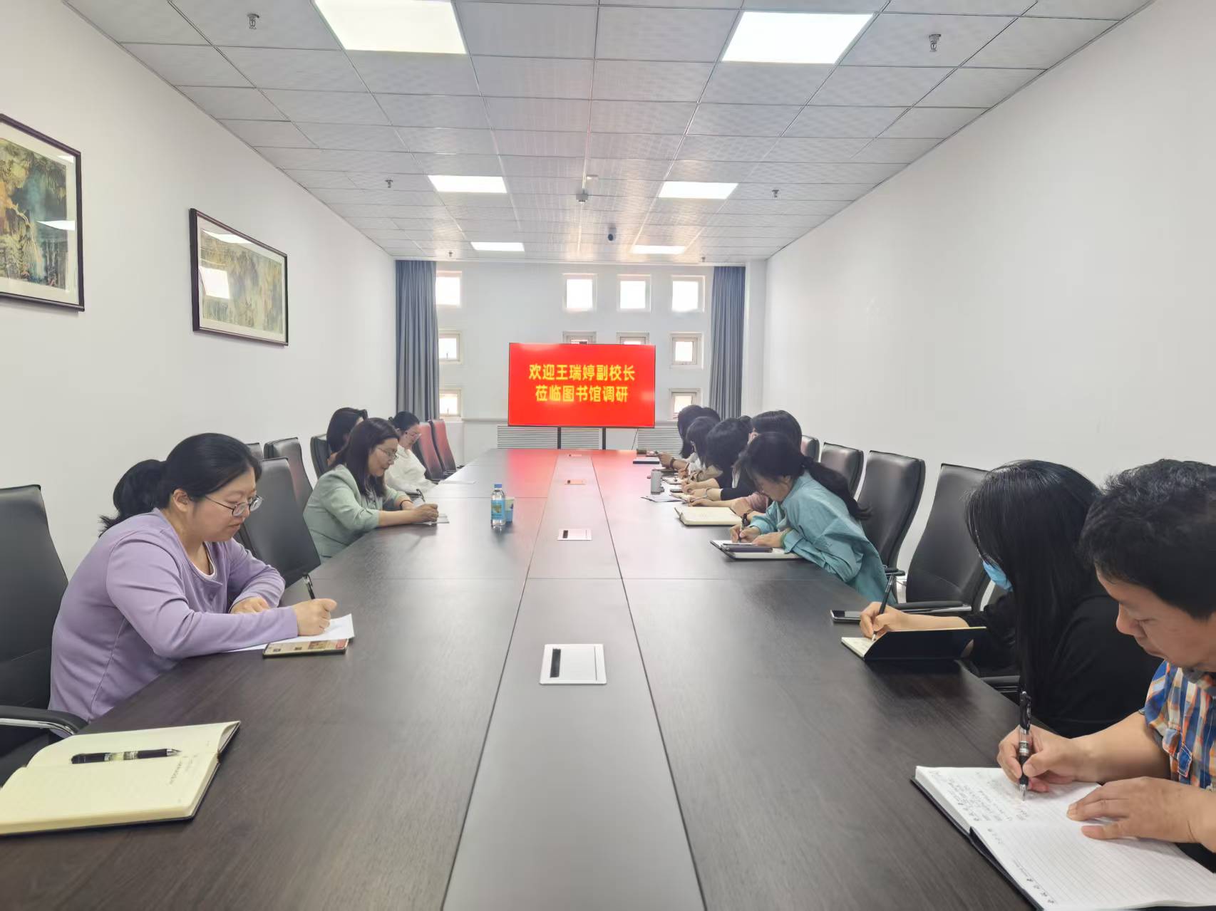 为推进本科教育教学审核评估工作,进一步提升图书馆服务质量,2025年5月20日上午,学校党委常委、副校长王瑞婷到图书馆进行调研指导。图书馆班子成员、教师代表参加了会议,会议由图书馆馆长王韫华主持。 调研中,王瑞婷实地查看了图书馆阅览室的运行情况,详细了解了馆藏资源建设和读者服务工作开展情况,与学生亲切交谈,关心学生的学习情况。 (点击每张图片即可查看原图)
