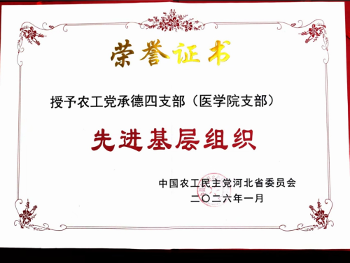 农工党承德医学院支部荣获“先进基层组织”荣誉称号